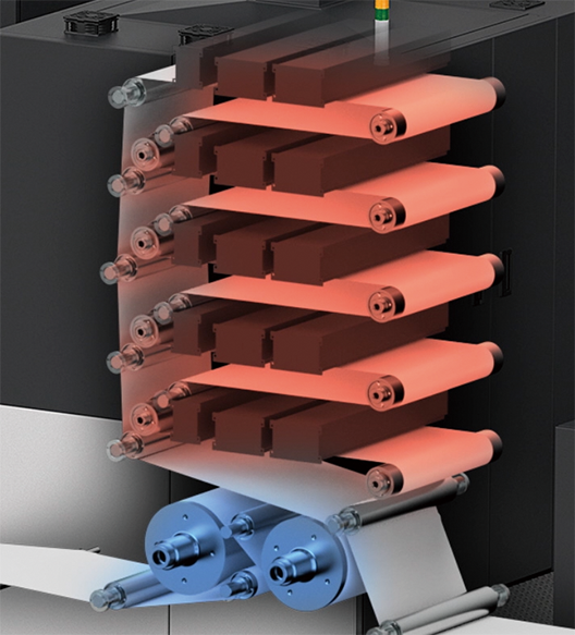 Each tower has IR heaters installed, which efficiently dries the ink, minimizing paper deformation.