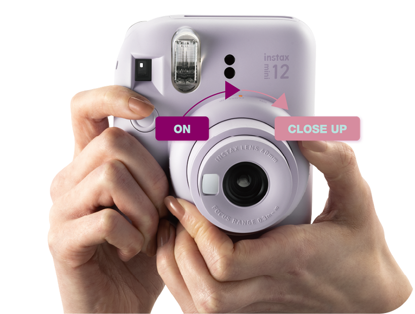 Twist the lens to turn on, twist again for Close-up mode, simple! This mode is ideal for distances of 12 to 19 in.
